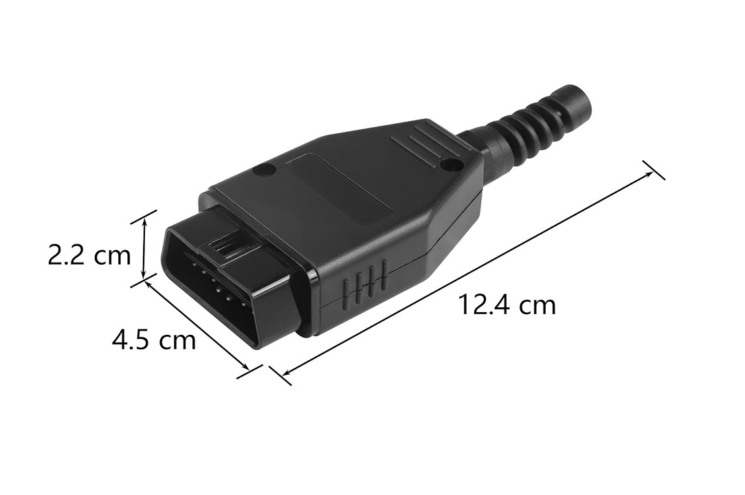 - El paquete incluye: 1 conector hembra OBD2 de 16 pines, 2 clips de retención de pines, 16 terminales.