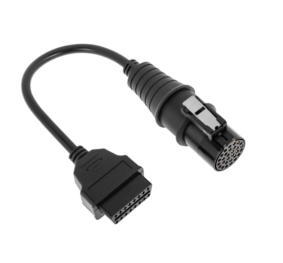 Permite adaptar rápidamente el conector OBD de 30 pines de vehículos de la marca Iveco al conector compatible OBD2 para realizar operaciones como el diagnósticos a través de los dispositivos modernos que trabajen a través del conector universal OBD2 (16 pines).