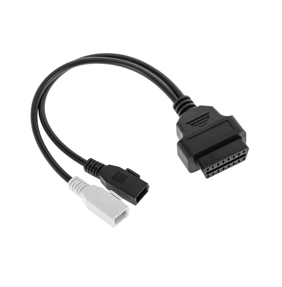 Permite adaptar rápidamente el conector OBD de 2 más 2 pines de automóviles ded grupo VAG (Volkswagen, Audi, Seat, Skoda) al conector compatible OBD2 para realizar operaciones como el diagnósticos a través de los dispositivos modernos que trabajen a través del conector universal OBD2 (16 pines).