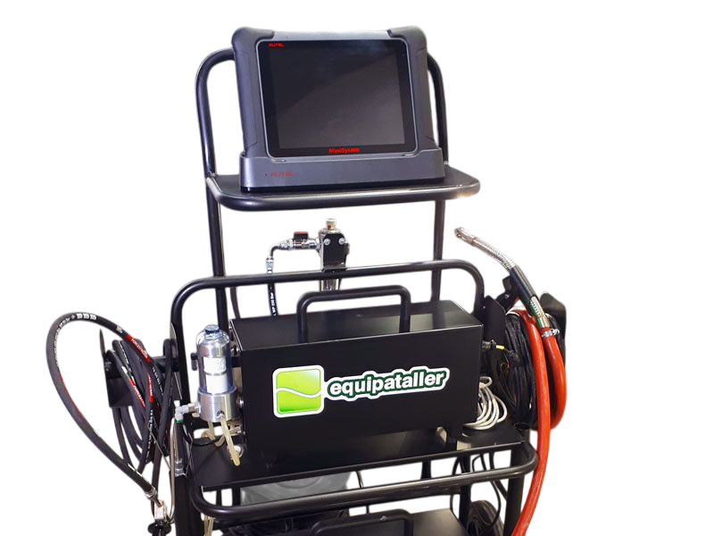 El carro te permite tener organizadas las dos máquinas y además te aporta una superficie de trabajo, ya sea con tu PC o con tu tablet Autel, cómoda, móvil y que te facilitará el desplazamiento y organización dentro del espacio de tu taller.