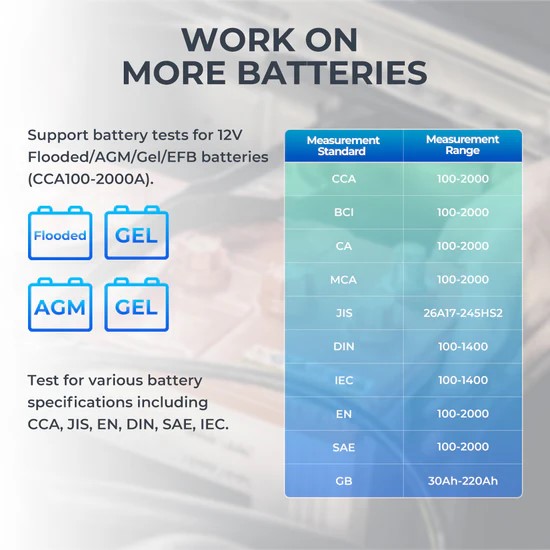 - Soporta pruebas de carga y pruebas de arranque para baterías de plomo-ácido de 12V y 24V, realizando pruebas de batería en baterías de 12V. Este probador permite a los profesionales probar automóviles de pasajeros y vehículos pesados. Con el BT600, los técnicos podrán completar aún más trabajos.