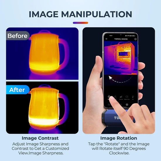 - Equipado con una cámara IR de resolución ultra alta de 256×192 píxeles, el TC001 puede producir una imagen térmica con una claridad inigualable.