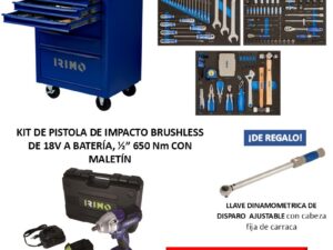IRIMO Kit de Pistola de Impacto 18v a batería 650 Nm con maletín